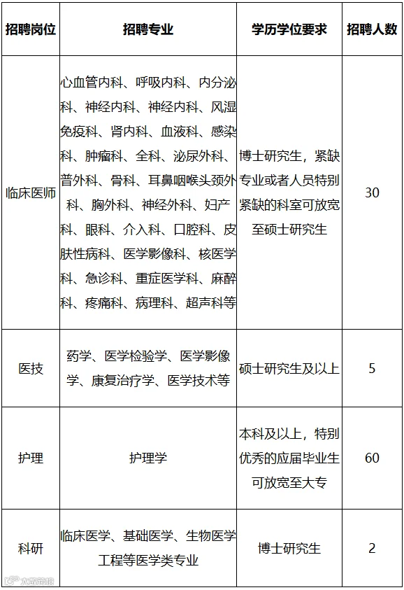 4.其他福利:按规定缴纳五险一金,按照医院科研奖励管理办法发放科研奖励、享受医院职工体检、带薪年假、节日福利等完善的保障;为青年人才和应届护士(本科)提供职工宿舍。