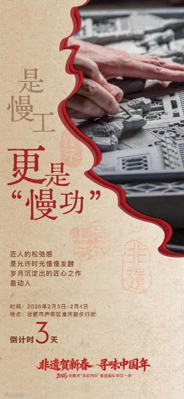 腊月已至,年味渐浓。2月3日-4日, 2026安徽省“多彩四季”非遗嘉年华第一季暨“非遗贺新春·寻味中国年”活动,将在合肥市庐阳区淮河路步行街红火启幕!张灯结彩,好戏连台,邀您共赴这场沉浸式新春文化盛宴!