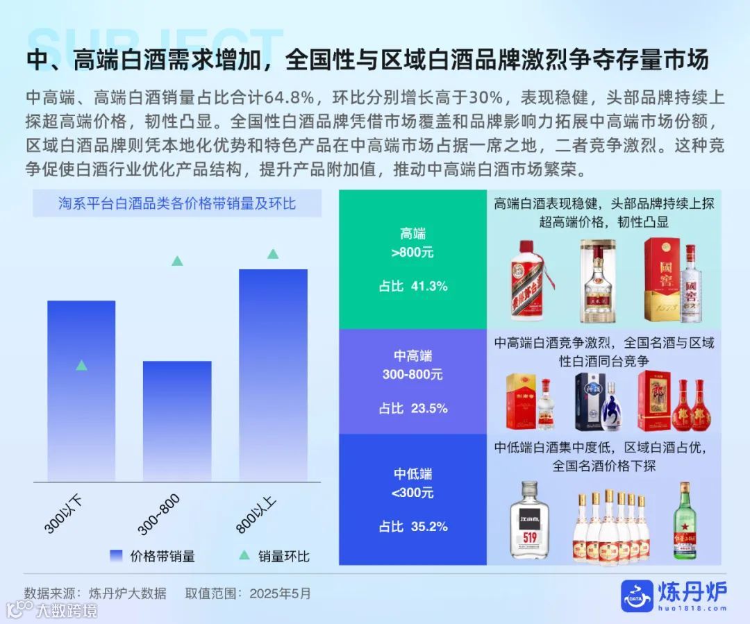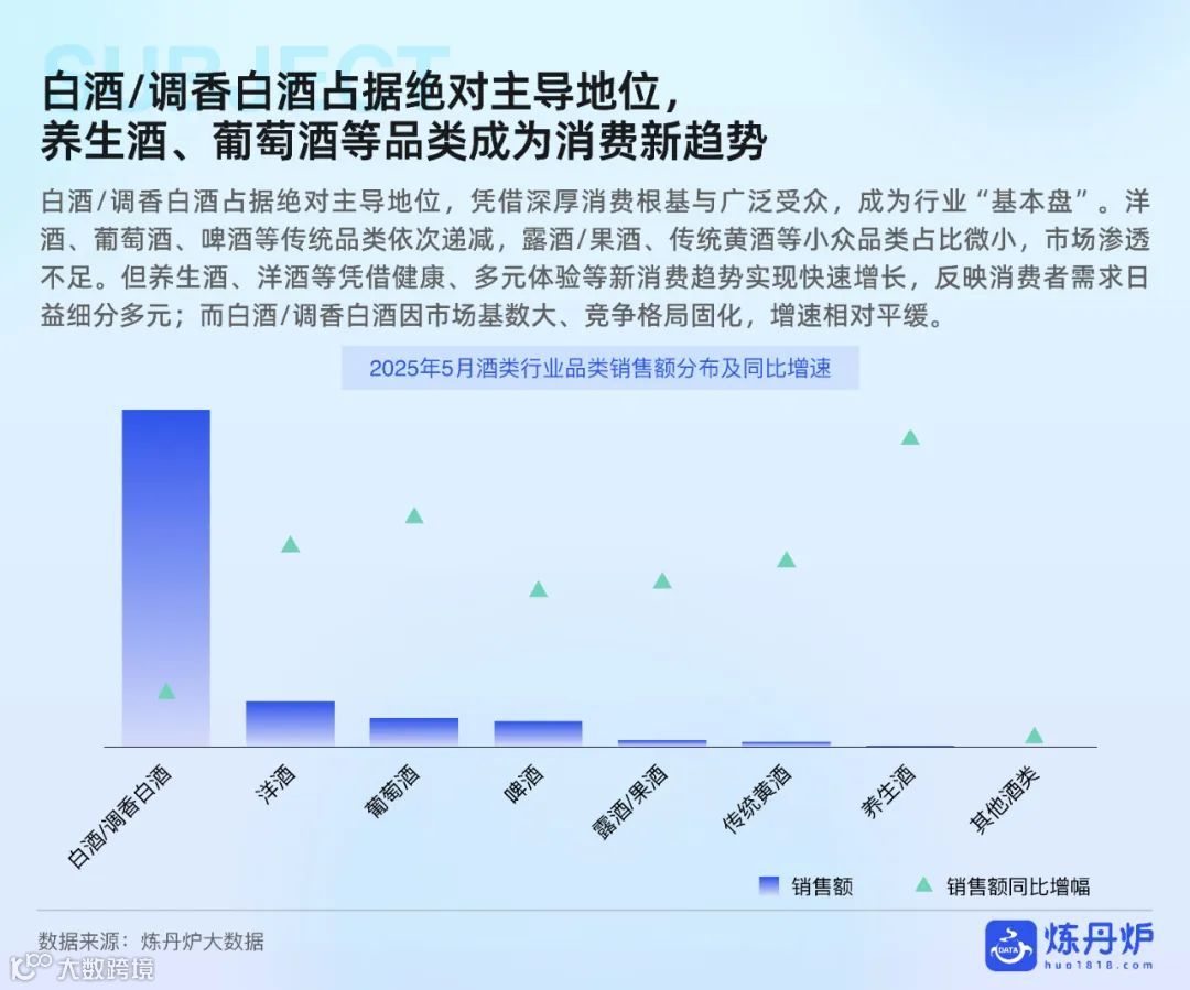 白酒(含调香白酒)仍是市场主力,整体增速放缓,但高端与次高端产品线持续扩张,反映出消费升级趋势。