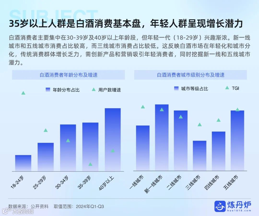 男性消费者仍占主导地位,占比达84%;但女性在低度酒、预调酒品类中的消费比例逐步上升,展现出新的市场潜力。