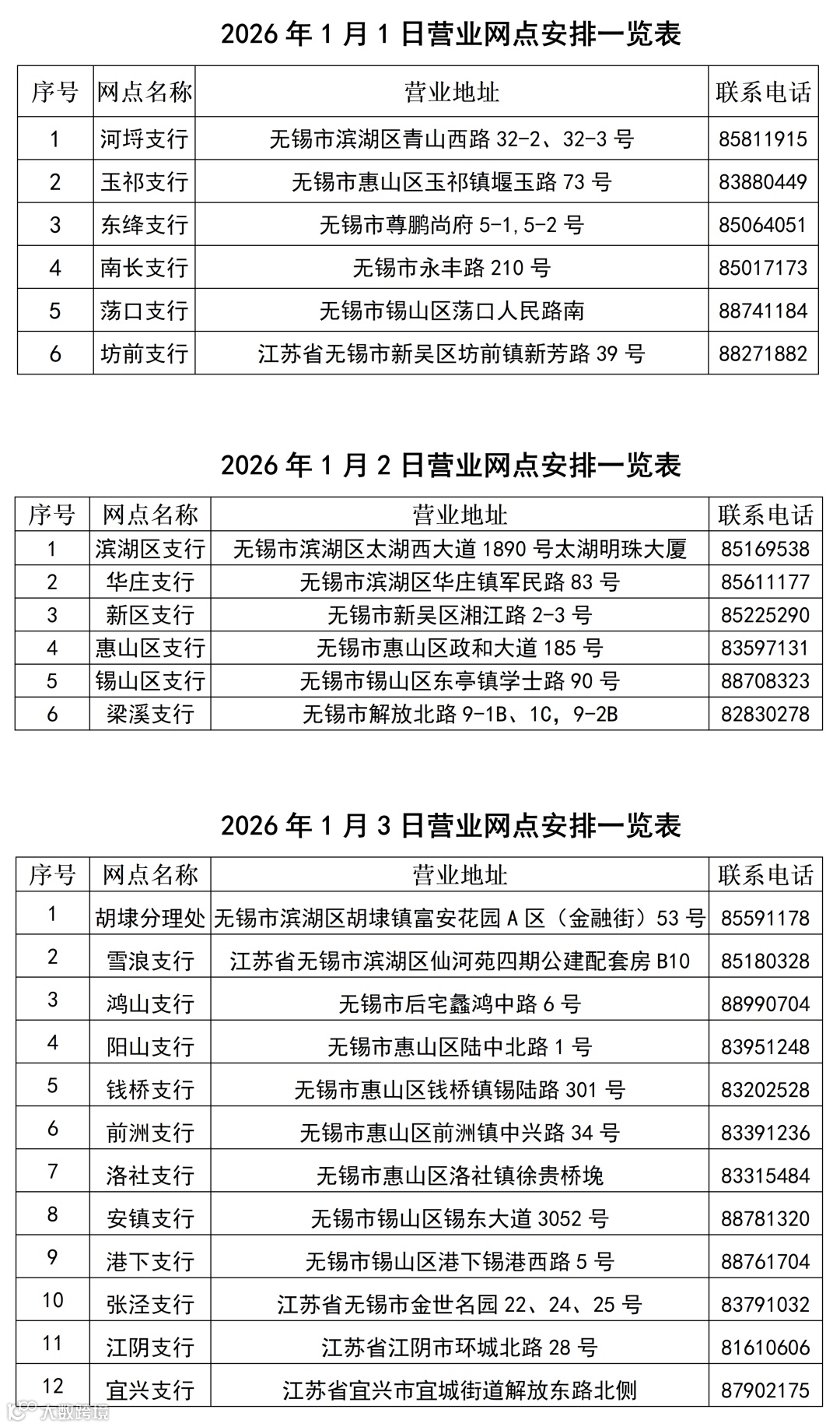 您好!根据《国务院办公厅关于2026年部分节假日安排的通知》精神,结合我行实际,现将我行元旦放假期间对外营业网点公告如下:
