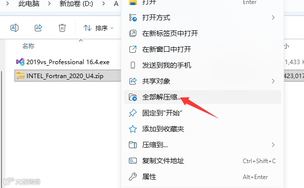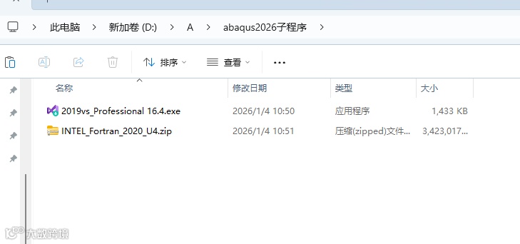 1、下载vs2019+fortran2020安装包(下载到自己电脑解压),下载地址附在教程底部,下载完成后使用解压软件进行解压,解压后如下图所示。