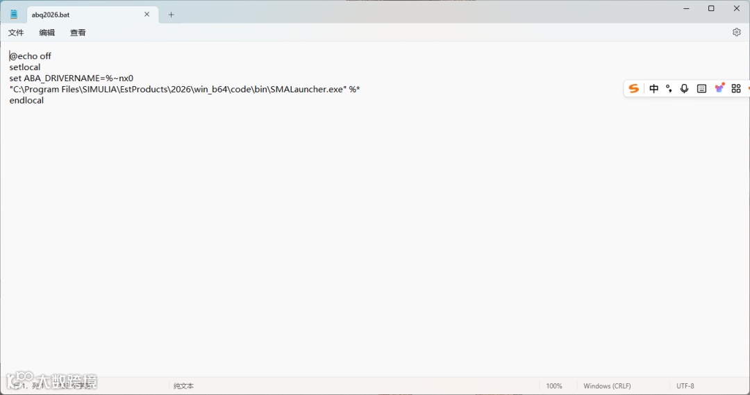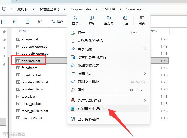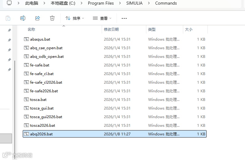 30、下面进行子程序关联。首先打开abaqus安装路径Commands文件夹下abq2026.bat文件。