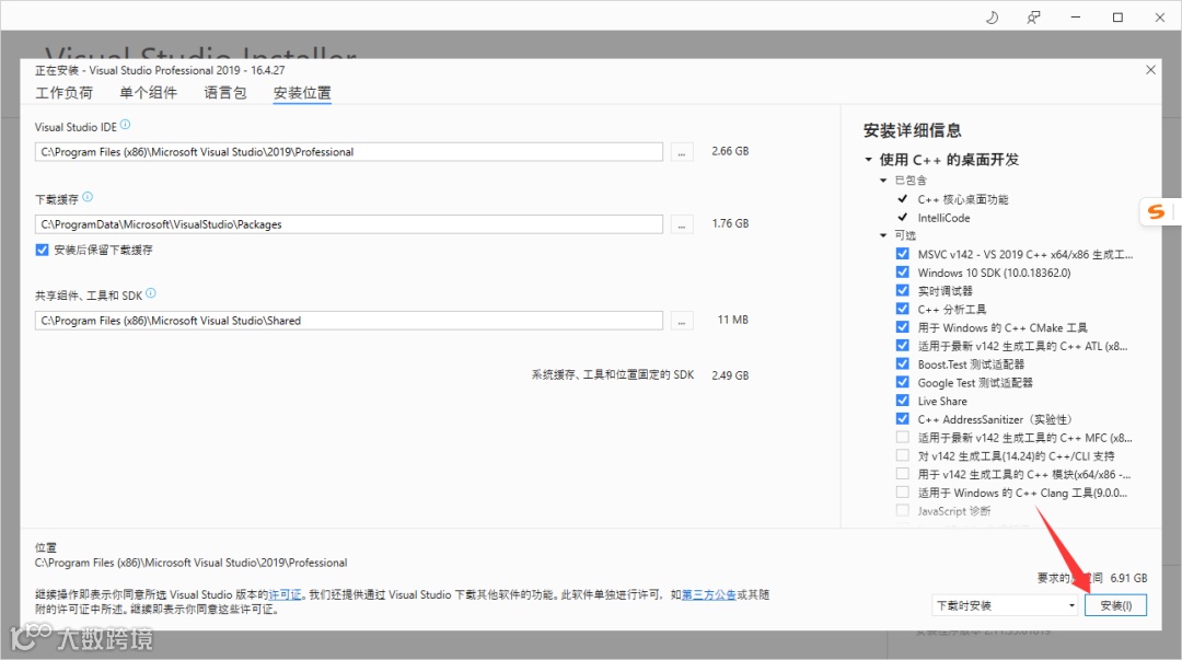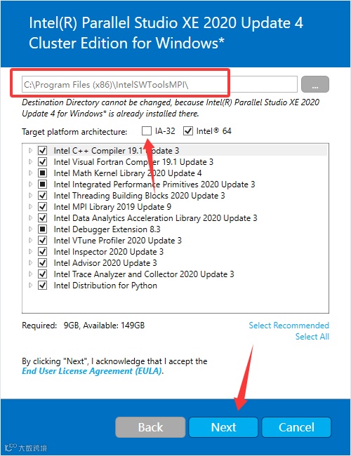 20、设置安装路径,去掉IA-32勾选,点击下一步。