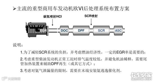 欧IV、欧V排放法规,可分别通过EGR+DPF或SCR技术来满足排放法规要求,但欧VI(国6)排放法规,必须综合采用SCR、DPF才能满足法规要求。