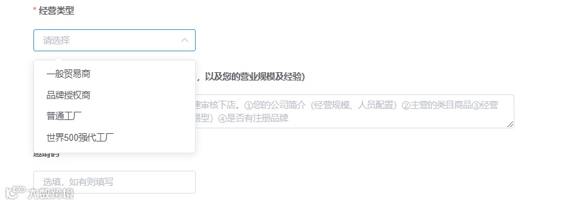 (请简要介绍您的主营商品类目,以及您的营业规模及经验)