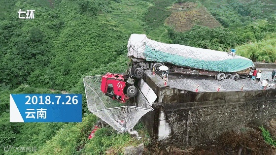 就在7月底,云南某高速发生了一起重大货车险情:由于司机不熟悉道路,没有合理地控制车速谨慎驾驶,造成车辆失控,司机急忙将车开向「刹车失灵缓冲带」,虽然车速得到了控制,但大货车车头还是冲出了缓冲坡,值得庆幸的是,这里设置了保护网兜,司机被网兜拦住,没有坠入百米悬崖。