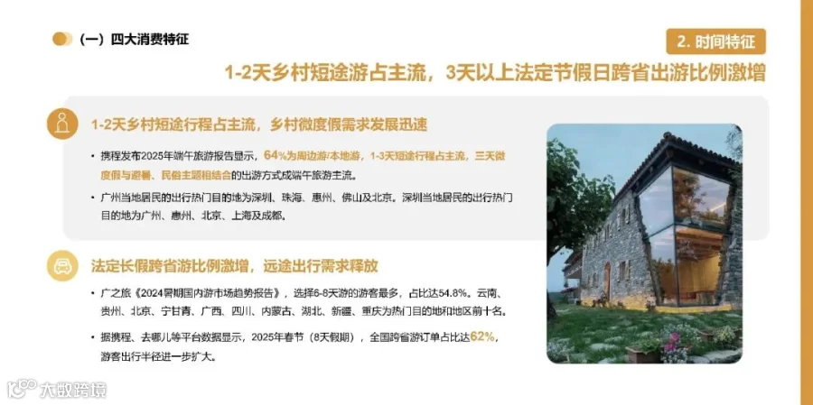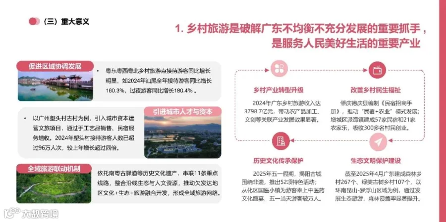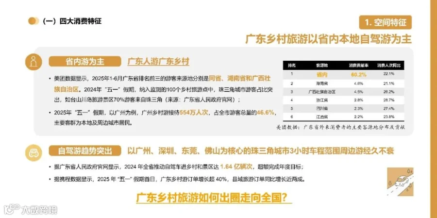 本报告基于2023-2025年主流平台及官方权威数据,分析广东省乡村旅游消费现状,总结出广东乡村旅游的四大消费特征、六大消费趋势与核心问题。