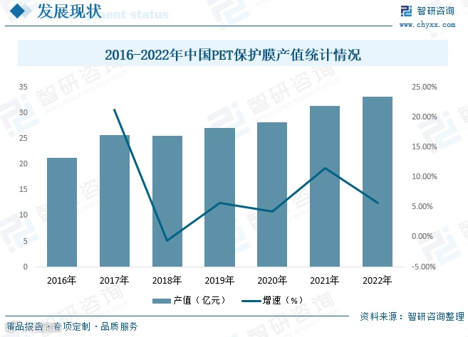 随着智能手机向轻薄化、智能化发展,OLED柔性屏与5G技术成为消费电子主流趋势,带动对高性能PET保护膜的需求持续增长。PET保护膜作为手机及其他电子部件加工过程中不可或缺的涂布材料,应用场景不断拓展。2022年中国PET材料产值达33.2亿元,同比增长5.73%,2016–2022年复合增长率达7.76%,呈现稳步上升态势。