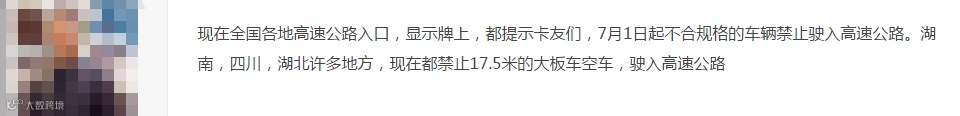 今年7月份之前,就有卡友表示湖南、四川、湖北等地,已经明令禁止17.5米大板驶入高速公路。