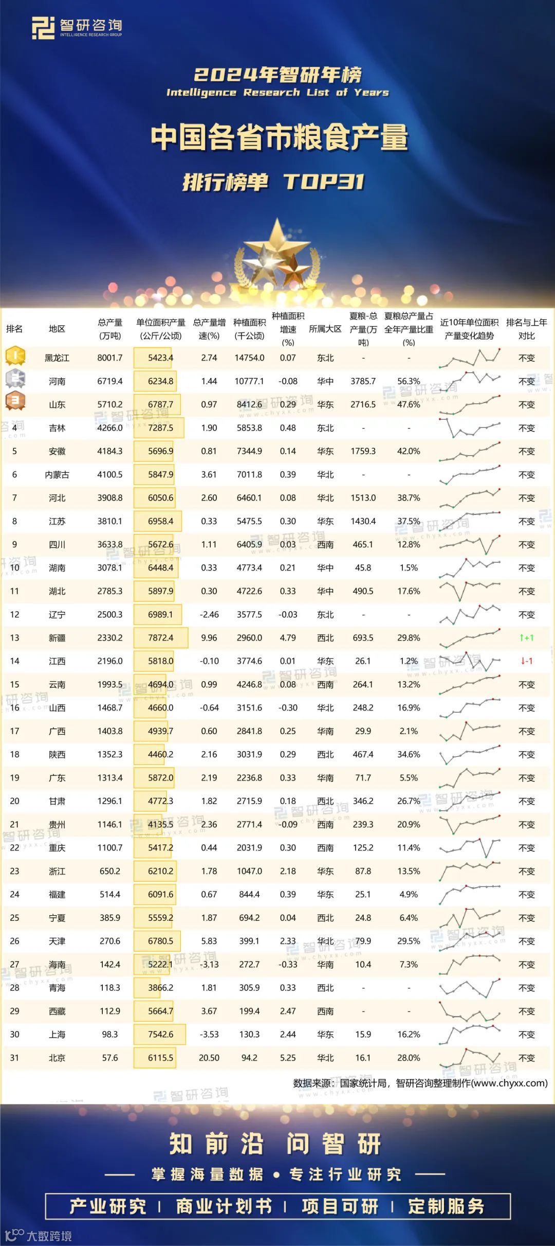 为研究中国各省市粮食产量及种植面积情况,智研咨询数据中心发布《智研年榜:2024年中国各省市粮食产量排行榜单TOP31》,提供权威数据参考。