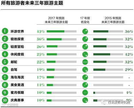 未来三年,环游世界(43%)和极地探索(36%)成为中国高端旅游者最向往的主题,轻度冒险(26%)位列第三。
