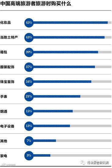 最受欢迎商品依次为化妆品(45%)、土特产(43%)、箱包(39%)、服装配饰(37%)、珠宝首饰(34%)。高关税与假货问题推动海外购物热潮。