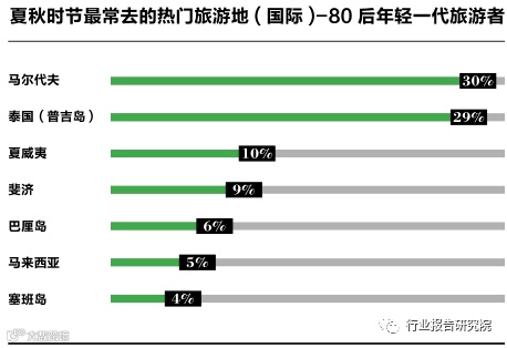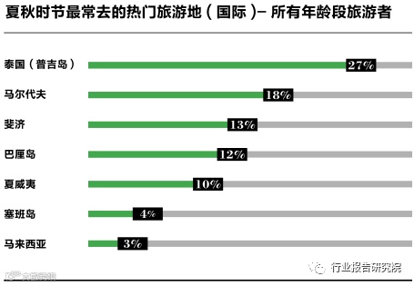 热门目的地包括普吉岛(27%)、三亚(16%)、马尔代夫(18%)、巴厘岛(12%)、斐济(13%)、夏威夷(10%),共同特征为碧海白沙与宜人气候。