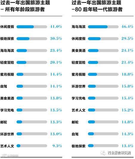 年轻群体中,30%计划未来三年前往海岛;美食美酒(27%)与艺术人文(16%)受追捧,而邮轮旅行热度下降14个百分点至第八位。