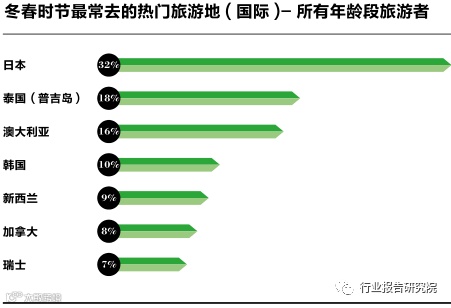 冬春季节,日本、泰国、澳大利亚成为三大首选目的地,各年龄层偏好高度一致。