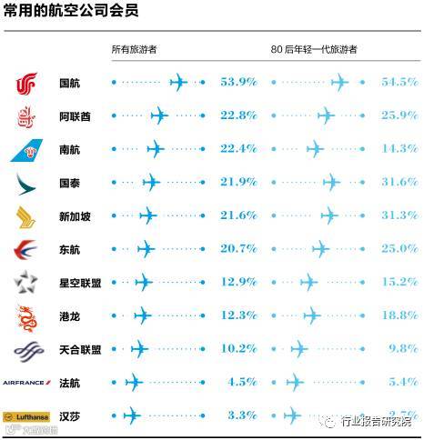 国内航空公司中,国航以53.9%的会员使用率稳居首位,南航(22.4%)、国泰(21.9%)位列其后。国航连续三年保持超50%的高忠诚度,在各年龄段均具统治性优势。