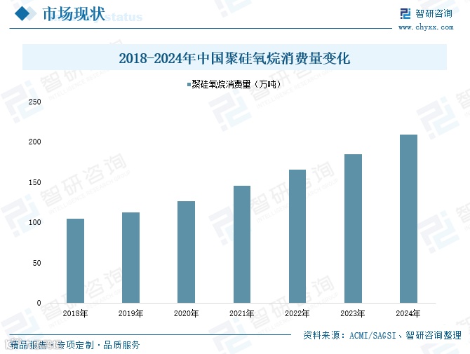 硅橡胶因其耐高低温、抗氧化、抗臭氧和抗紫外线等特性,广泛应用于电子电器、新能源、汽车及医疗领域。随着下游需求增长,2024年国内硅橡胶产量突破250万吨,带动聚硅氧烷消费量超过200万吨。
