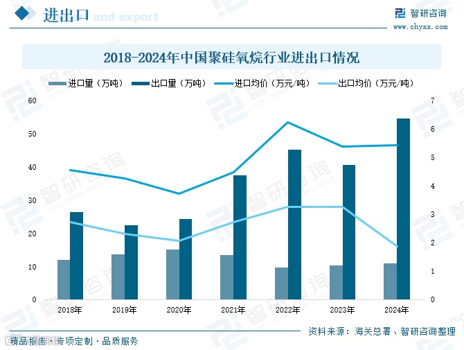 我国聚硅氧烷行业正处于快速扩产阶段,新增产能主要来自龙头企业扩能及多晶硅企业跨界布局。尽管出口回升得益于全球产能转移和政策支持,但中低端产品过剩、高端产品依赖进口的结构性矛盾突出,未来需通过技术创新优化产品结构,推动供需平衡。