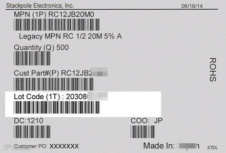 • 生产批号通常印在商品外包装。它通常显示在商品包装的顶部、底部或侧面。批号必须是唯一的,且在商品寿命期内清晰可辨、不易磨损。在食品行业,保质期是可追踪性的主要指标。因此,如果商品包装上未印有批号,通常会使用保质期来追踪商品批次。