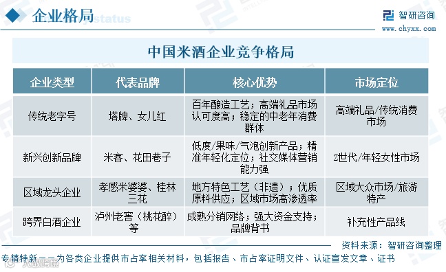 中国米酒行业竞争格局多元且动态演变。传统老字号企业如塔牌、女儿红等,依托深厚历史底蕴、成熟工艺和广泛品牌认知,在高端礼品及传统市场占据优势,但面临产品创新与年轻化转型压力。新兴品牌如米客、花田巷子等,聚焦低度化、果味化、气泡化产品,精准切入年轻消费群体,借助线上渠道与社交媒体营销迅速崛起,形成差异化竞争力。区域特色企业如孝感米婆婆、桂林三花,依靠本地优质原料与独特工艺深耕区域市场,并逐步向全国拓展,但仍需突破地域限制与标准化瓶颈。此外,部分白酒企业跨界布局米酒领域,利用资金与渠道优势加快市场渗透,加剧行业竞争。整体来看,行业正由单一品牌竞争转向涵盖产品创新、渠道拓展、文化赋能与供应链效率的全方位竞争,具备差异化定位、数字化运营及文化挖掘能力的企业更具发展前景。
