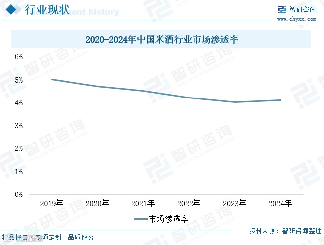 当前,米酒在中国酒类市场中份额约为4%-5%。2024年,在健康饮酒趋势和年轻消费崛起推动下,低度酒需求增强,气泡米酒、果味米酒等新品类快速扩张,带动整体市场份额小幅回升至4.1%。未来,随着产品结构优化(如低糖、功能性米酒开发)及消费场景拓展,市场占比有望进一步提升。