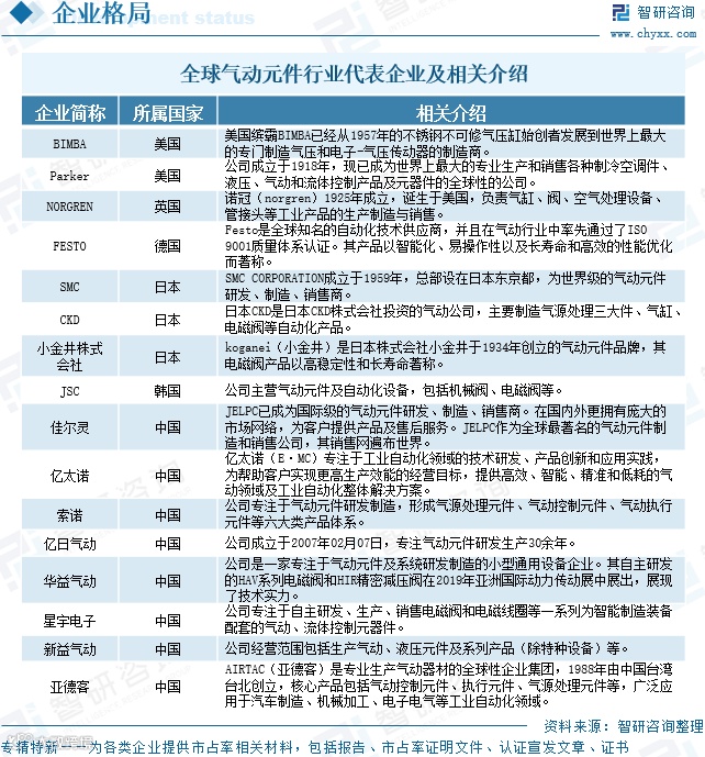 气动元件行业企业格局和重点企业分析