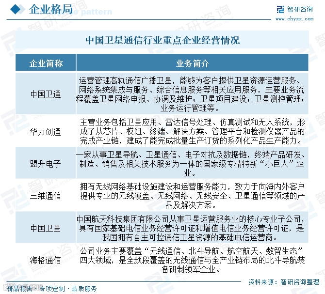 - 第三梯队:民营企业为主,竞争力相对较弱,如银河航天、华讯方舟、中网卫通等,多持有VSAT等单项增值业务许可。