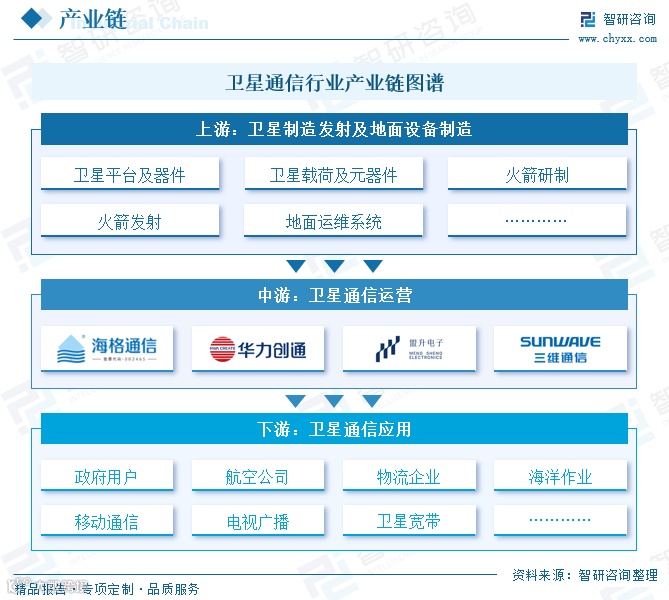 下游应用场景涵盖海上通信、航空互联、陆地偏远地区接入、政府应急通信及M2M物联网等,主要用户包括中国广电、电信运营商、政府部门以及金融、能源等行业客户。