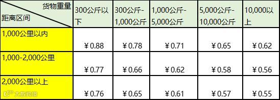 7.3 三个线路距离范围内,再按照货物重量分为5个阶梯价格区间。