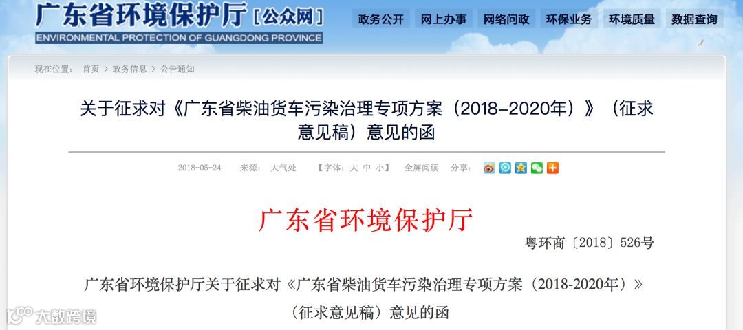 5月24日,《广东省柴油货车污染治理专项方案(2018~2020年)(征求意见稿)》开始公示,将对柴油货车污染治理出大招。