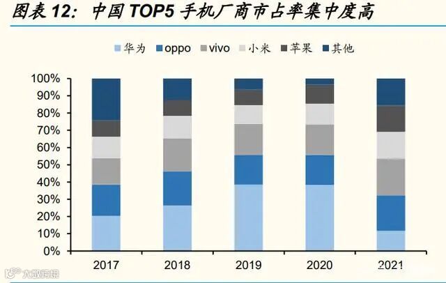 大功率快充推动单价提升,如华为40W快充售价已达159元。同时,下游终端品牌集中度高——全球TOP5手机厂商市占率超70%,TOP5 PC厂商达75%,有利于大陆电源厂商绑定头部客户实现快速渗透。