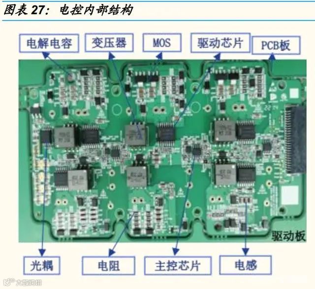 中国市场对应规模分别为594亿元(电控)和326亿元(电源),CAGR达47%。单车价值方面,MCU约4500元,OBC+DC-DC约3350元,BMS约1500元,集成化趋势下年降幅约5%。