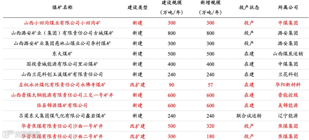 山西省非资源整合煤矿列表(截至2020年末,红色为焦煤资源):