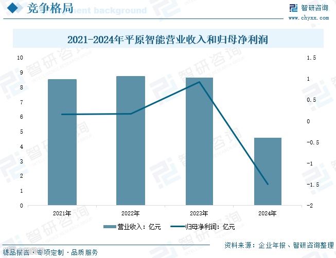 河南平原智能装备成立于2002年,专注于自动化涂装、焊装、总装生产线及工业机器人集成系统的研发与实施,服务领域涵盖汽车、工程机械、轨道交通、家电等。2024年公司实现营业收入4.59亿元,同比下降46.98%;归母净利润亏损1.49亿元,经营压力较大。