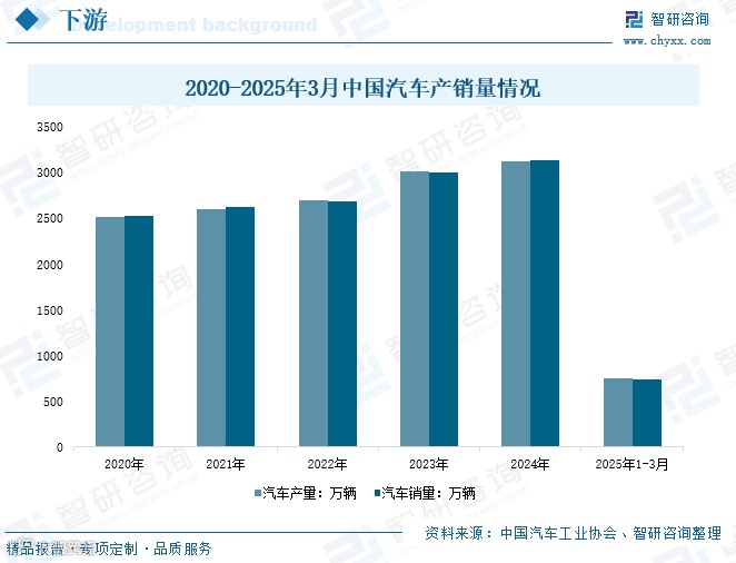 汽车行业是喷涂机器人最主要的应用领域之一,主要用于车身及零部件涂装,喷涂渗透率已超70%。随着汽车产业持续发展,2025年1-3月汽车产量达756.1万辆,同比增长14.5%;销量747万辆,同比增长11.2%,带动喷涂机器人需求稳步增长。