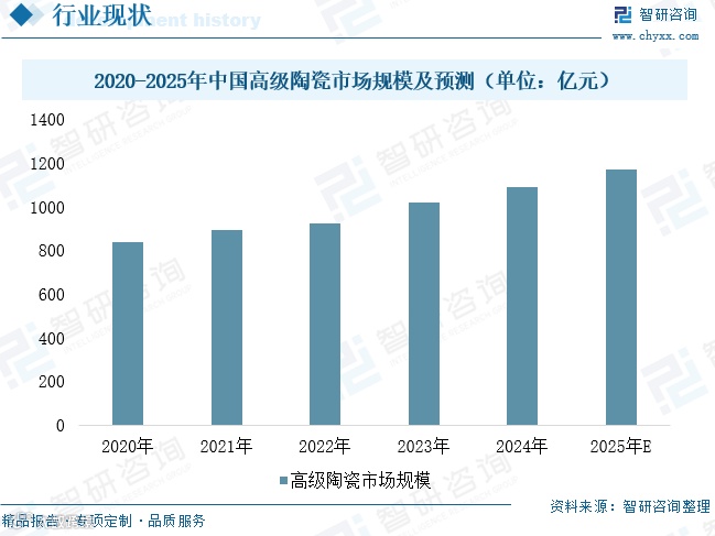 中国高级陶瓷产业已进入高质量发展阶段,作为关键战略材料,在电子、医疗、新能源等领域广泛应用。受5G通信、新能源汽车等终端需求拉动,行业持续增长。2024年市场规模达约1090亿元。尽管高纯粉体、半导体陶瓷等领域仍存在进口依赖,但随着国产替代推进与核心技术突破,固态电池隔膜、车规级电子陶瓷等新兴应用场景快速落地,成为新增长点。预计2025年市场规模将达1167亿元,未来将向智能化、绿色化方向升级,构建全产业链协同创新生态。