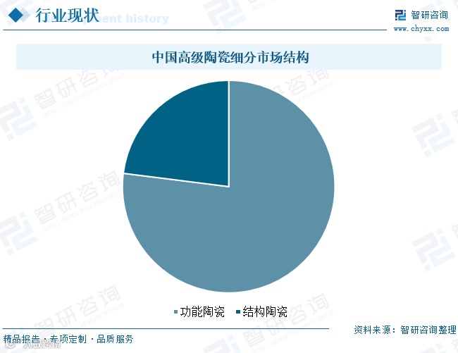 从细分市场看,功能陶瓷因在电子元器件、生物医疗等领域的不可替代性,占据主导地位,占比约77%;结构陶瓷受限于高端装备需求波动和技术壁垒,市场份额约为23%,但随着工业母机、新能源装备国产化进程加快,其发展空间有望进一步释放。