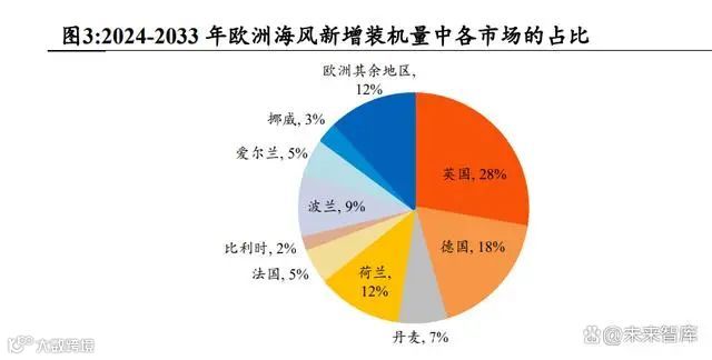 装机方面,预计欧洲 2025 年新增海风装机 5.6GW,同比增长超 51%;2028 年和 2030 年分别突破 10GW 和 20GW。漂浮式海上风电预计于 2030 年前后进入成熟应用期,到 2033 年全球累计装机规模有望达 31GW。当前挪威、英国、葡萄牙、中国和日本为全球五大漂浮式风电市场,其中欧洲技术迭代较快,中国则是供应链产能增长最快的国家。