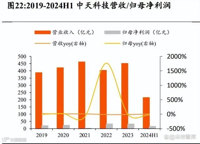 公司业务涵盖通信、电力、海洋、新能源等领域。2024H1 实现营收 214.16 亿元,归母净利润 14.60 亿元,同比分别增长 6.32% 和下降 25.31%。