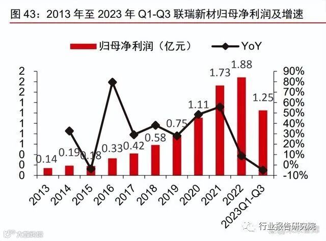 公司为国内最大球形硅微粉生产商,2021年产能超2.2万吨。产品广泛应用于覆铜板与环氧塑封料,客户包括三星、松下、住友等。2018–2022年营收CAGR为24.21%,归母净利润CAGR为34.01%。2023年Q1–Q3利润小幅下滑,主因行业下行。