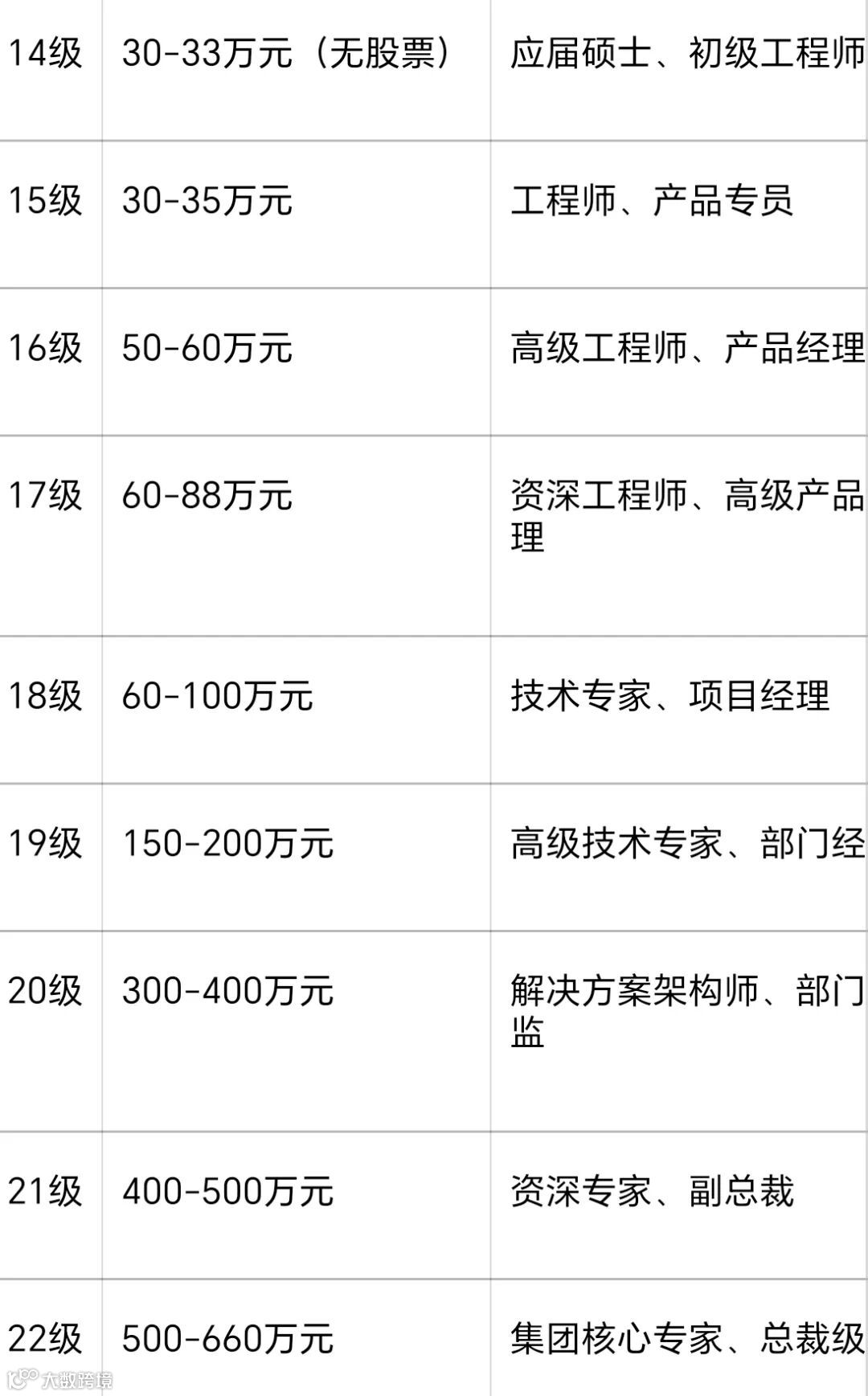 14级 30-33万元(无股票) 应届硕士、初级工程师
