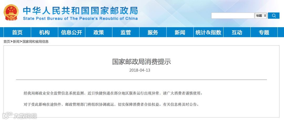 对于受此影响在途快件,邮政管理部门将组织协调疏运,切实保障消费者合法权益。有关信息将及时公告。