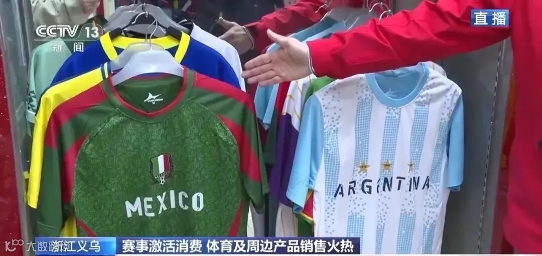 其中,东道主墨西哥队球迷服出货量已达约30万件;阿根廷、巴西、西班牙等传统强队产品同样热销,如阿根廷队球迷服出货量约20万件。