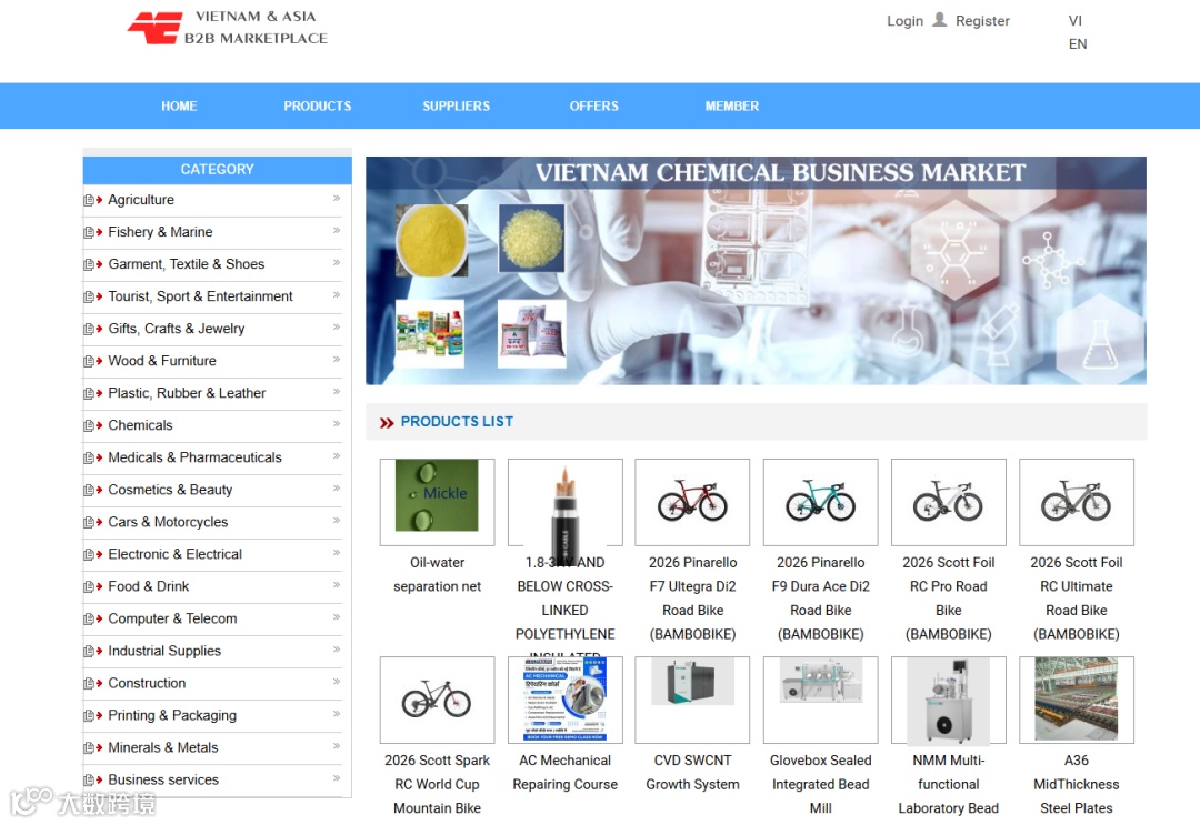推荐理由: 由越南工贸部支持的平台。它不仅提供行业报告,还有一个专门的企业目录,按行业细分。对于做化工、农业、轻工业等垂直领域的供应商来说,这里的名单含金量极高,能直接对接有实力的贸易合作伙伴。