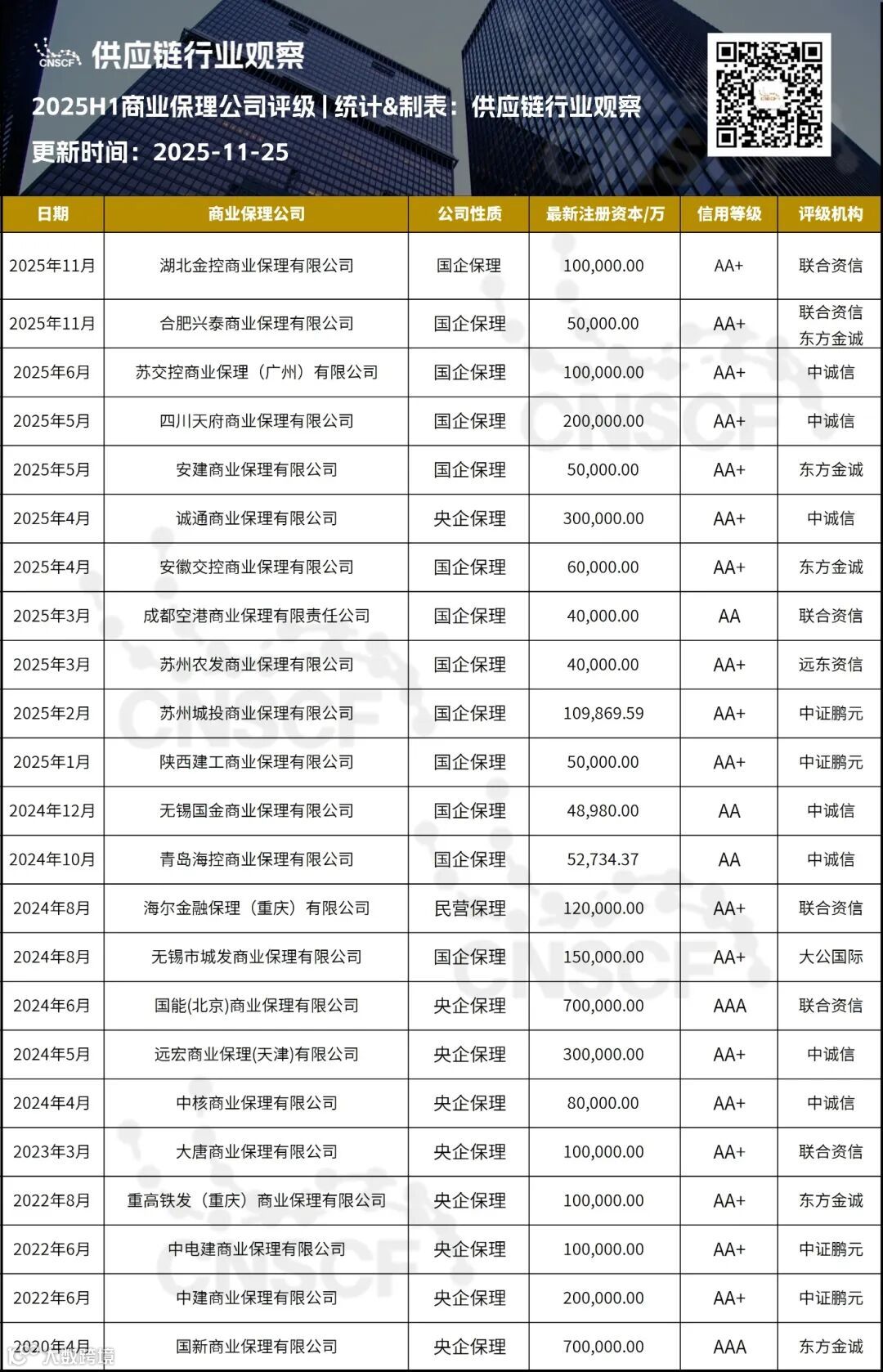 小供注意到,随着商业保理“减量提质”时代到来,股东实力强、业务场景优的商业保理公司通过增加注册资本等方式,不断增强资本实力,随着资本实力的增强,截至2025年11月,已有23家商业保理获得主体信用评级,其中评级多为AA+以上。