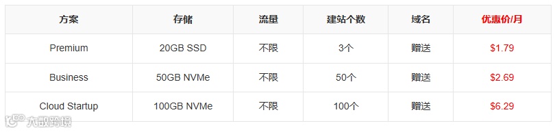 通过专属优惠购买全场外贸主机方案,额外享10%优惠,如Premium方案官方优惠价为$1.99/月,优惠价为$1.79/月,额外加赠3个月免费试用期限。