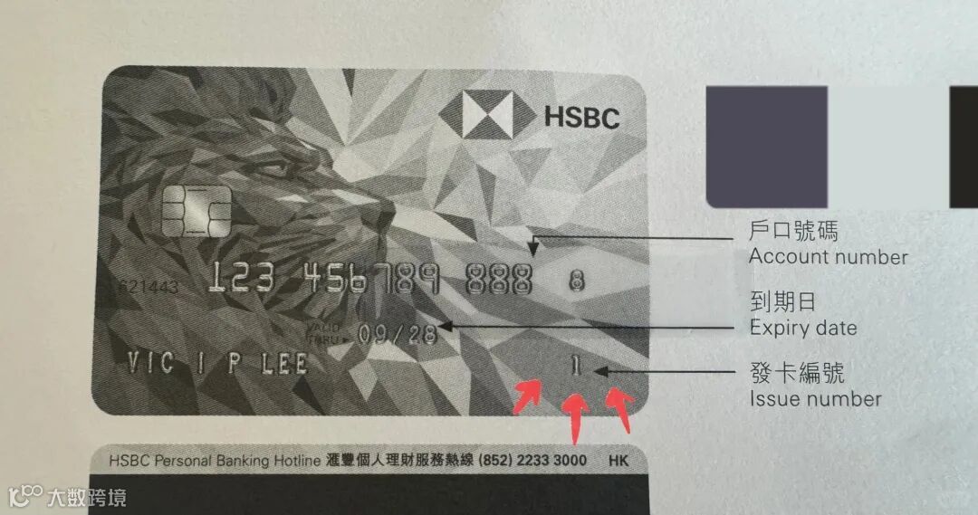 汇丰One卡通常为红狮子银联卡,卡号以855开头,共6位数字。卡片正面右下角标注有1位数的发卡编号(如“1”),请确认信息清晰完整。