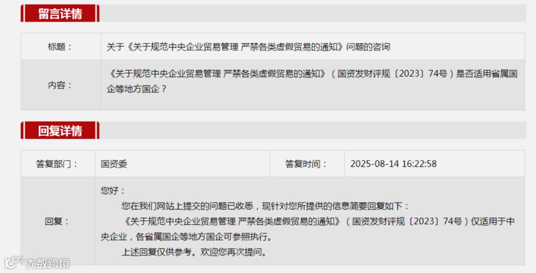 2025年8月,国务院国资委再次针对“贸易业务十不准”进行回应。国资委表示: