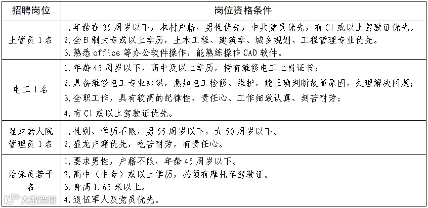 根据工作需要,海洲村招聘工作人员若干名,要求如下: